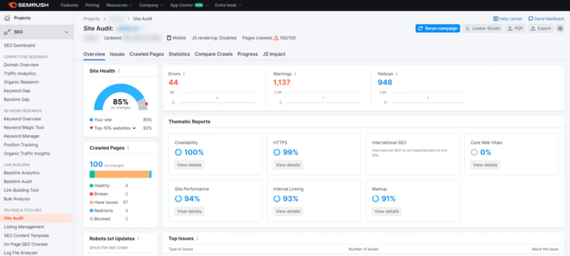 - проводить технический аудит сайта и выдавать список ошибок с приоритетами,