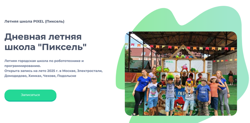 Городской летний лагерь школы программирования «Пиксель» – это пространство, где дети от 8 до 15 лет осваивают IT-навыки и создают собственные проекты в дружной рабочей атмосфере.