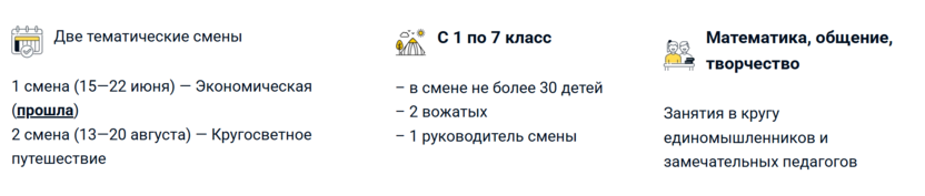 Программа смены включает занятия по олимпиадной математике, логике и естественным наукам. В основе обучения – работа с нестандартными задачами, развитие системного мышления и подготовка к участию в школьных и городских олимпиадах. Школьников обучают опытные тренеры и преподаватели, многие из которых сами являются выпускниками сильнейших математических школ.