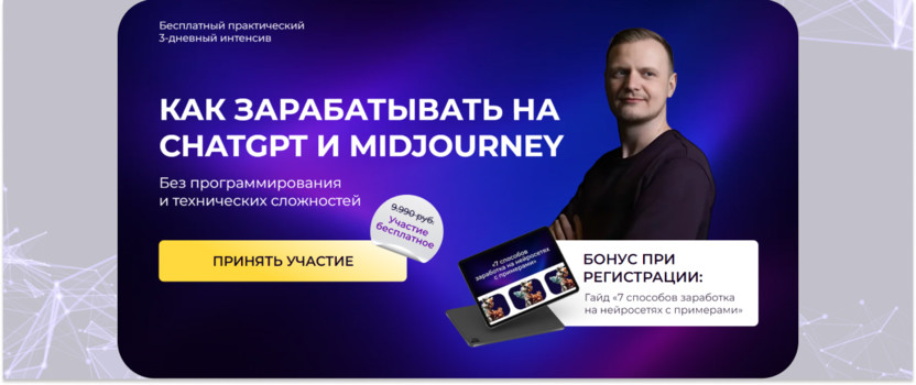 «Нейросети 2.0» от AI-CENTR: практическая программа с бонусным доступом к интенсиву по быстрому заработку на нейросетях.