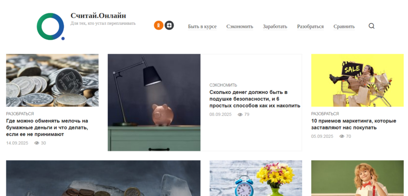 Онлайн-журнал о личных финансах, где простым языком объясняют, как экономить, сравнивают товары и разбирают возможности заработка. Пишут обо всем – от бытовых лайфхаков до изменений в законодательстве. Если у вас есть полезный опыт или экспертные знания, присылайте статью главреду на почту media@schitai.online.