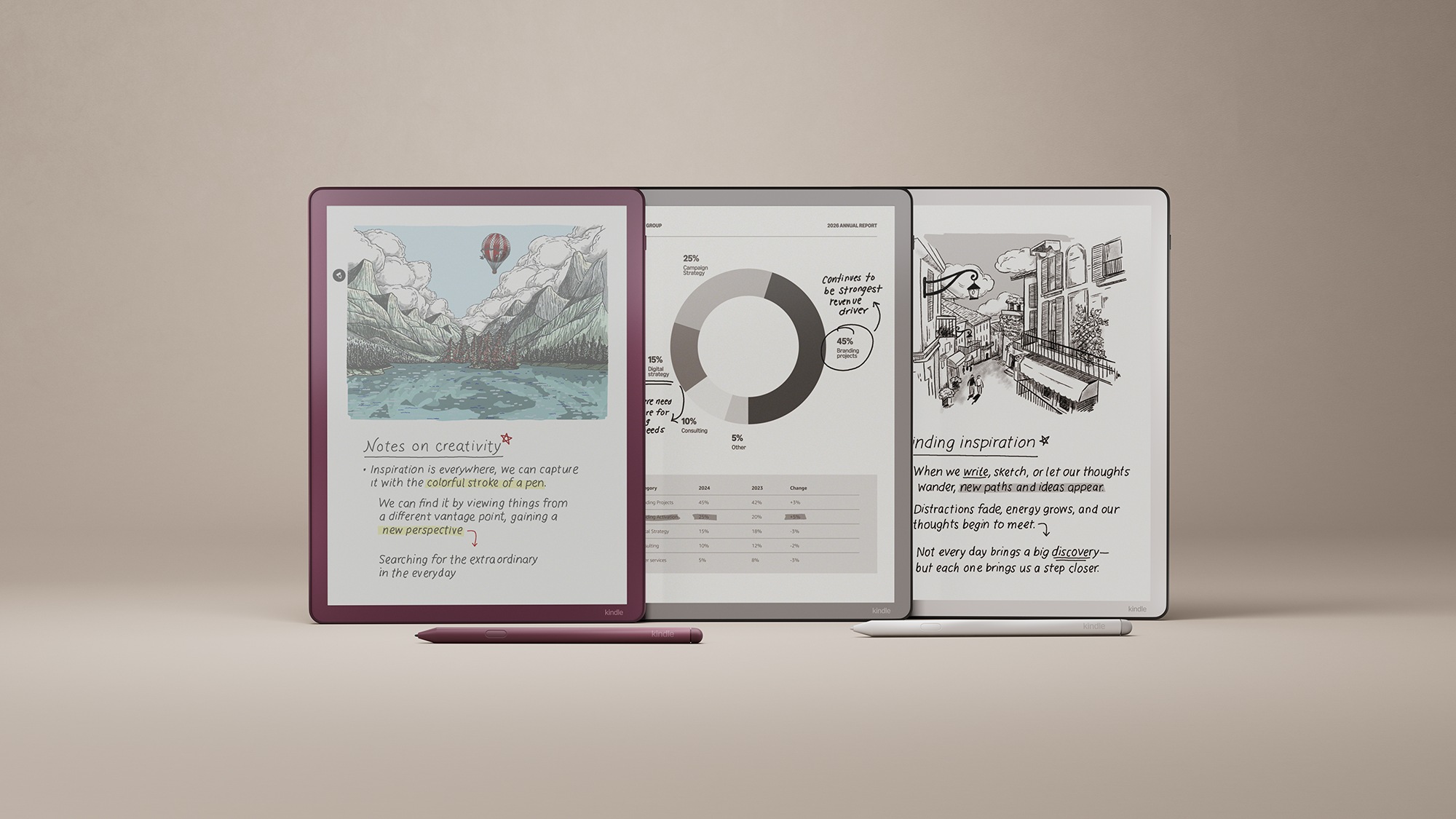Экран Colorsoft получил цветную E-Ink-панель с «мягкой» цветопередачей. Также во всех моделях Amazon сократила площадь рамок, обновила подсветку и поставила новое стекло с текстурой, создающей большее трение при письме. Промежуток между стеклом и слоем E-Ink уменьшили – это должно приближать ощущения пера к настоящей ручке на бумаге. Аппаратную часть тоже улучшили – новый чип и увеличенный объем памяти ускоряют отклик – Amazon обещает примерно +40% при листании и рукописном вводе.