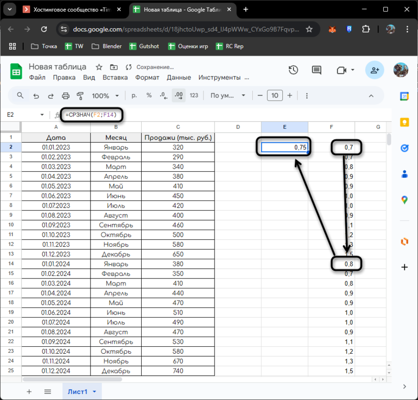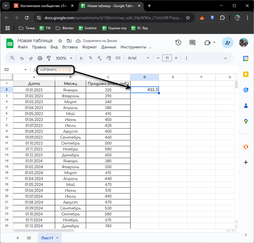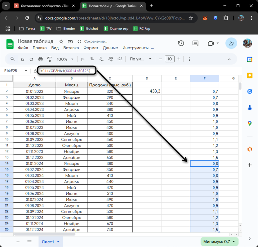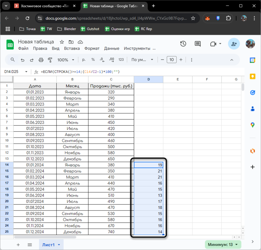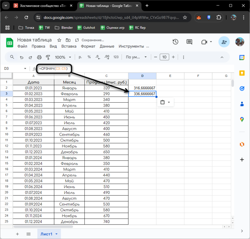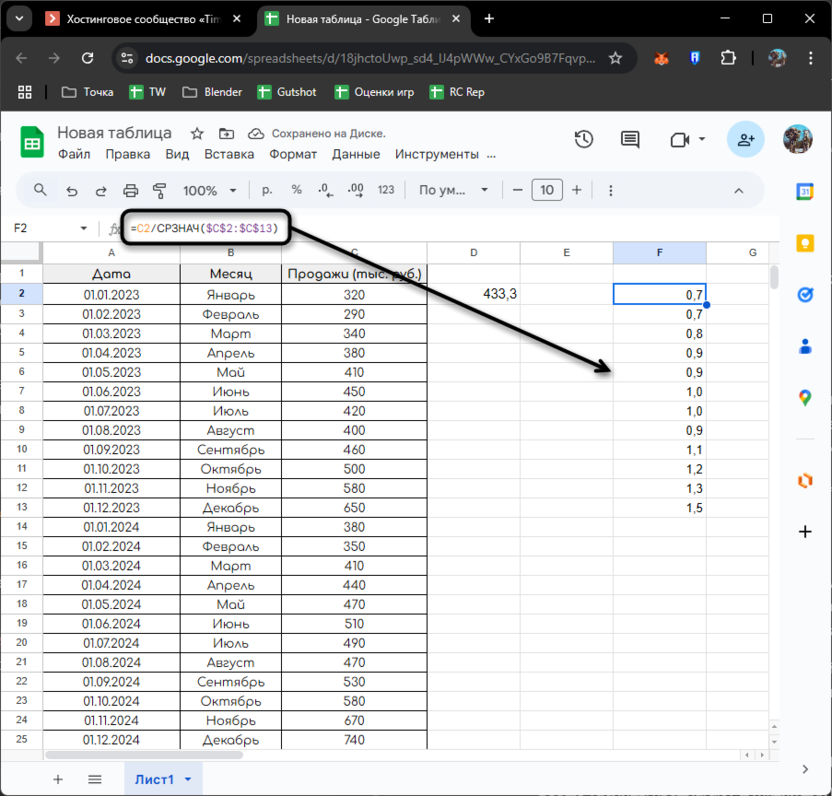 Однако вводить такие формулы для каждого периода неудобно. Google Таблицы позволяют автоматизировать этот процесс с помощью динамических диапазонов: