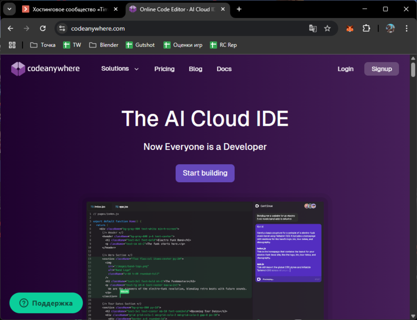 - Функция мгновенного хостинга – каждый проект получает уникальный URL, по которому можно сразу показать результат клиенту.
