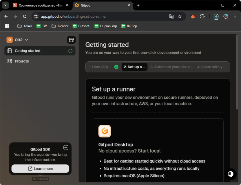Gitpod на первый взгляд напоминает VSCode, но с существенным отличием – он работает полностью в облаке и предоставляет готовое к использованию окружение для разработки. Каждое рабочее пространство в Gitpod – это контейнер Linux с предустановленными инструментами, необходимыми для проекта. Это означает, что можно начать работу над проектом без необходимости настраивать локальное окружение или устанавливать зависимости – все уже готово к использованию.