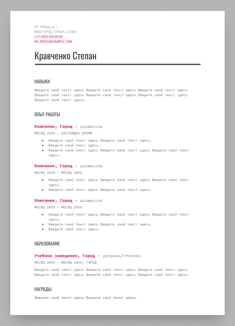 Минималистичные и креативные, классические и яркие – здесь есть бесплатные макеты на любой вкус. Одни бланки можно сохранить в pdf, другие – в docx или doc, третьи открываются в Google Docs. Для последних есть варианты с фото.