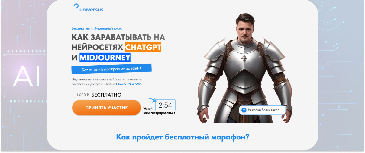 2. «Как зарабатывать на нейросетях ChatGPT и Midjourney» – Universus