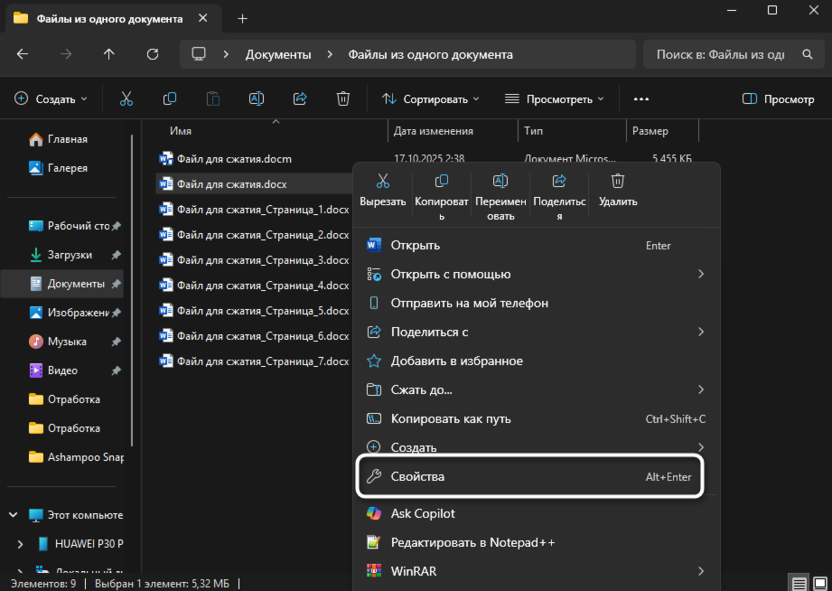 Кликните правой кнопкой мыши по файлу Word, который не открывается, и выберите «Свойства» из контекстного меню.