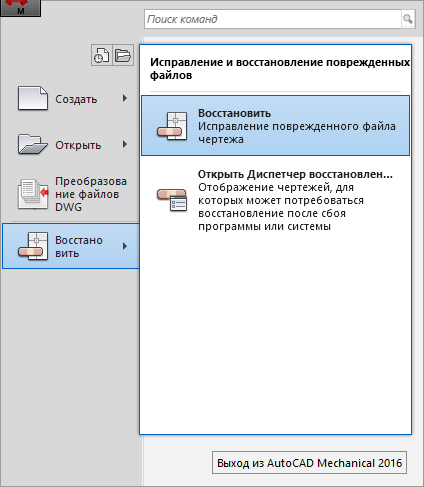 Какие варианты восстановления поврежденного чертежа AutoCAD возможны: