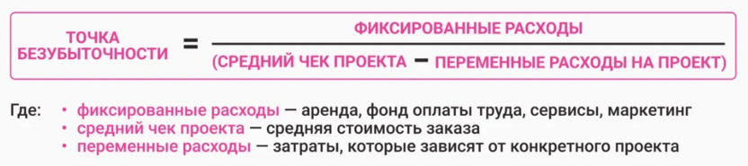- Округляем в большую сторону – получается 3 проекта в месяц. Это и есть ваша точка безубыточности. Четвёртый заказ и дальше уже будут работать в чистую прибыль.