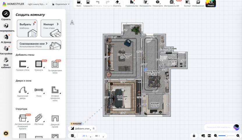 Дизайн-проект своими руками в Homestyler