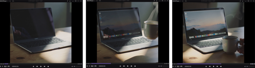 Промпт для 5-секундного видео: «Неподвижная камера на рабочий стол. Темный экран ноутбука плавно загорается, показывая рабочий стол. Одновременно рука вставляет в кадр и ставит керамическую чашку с дымящимся кофе. Луч утреннего солнца медленно сползает по краю клавиатуры. Стиль реализм, детальные текстуры»: