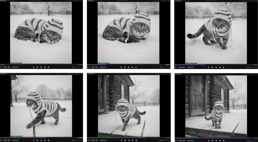 Запрос для видео. «Оживи фото. Сделай так, чтобы кот проснулся, медленно открыл глаза, поднялся из снега, повернулся и зашел на крыльцо дома». Отправляем на генерацию: