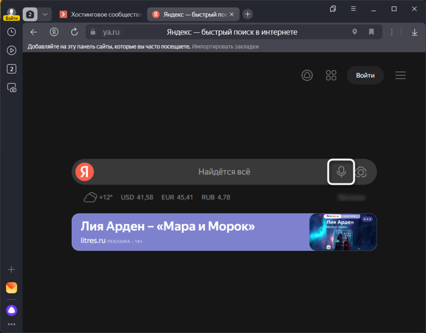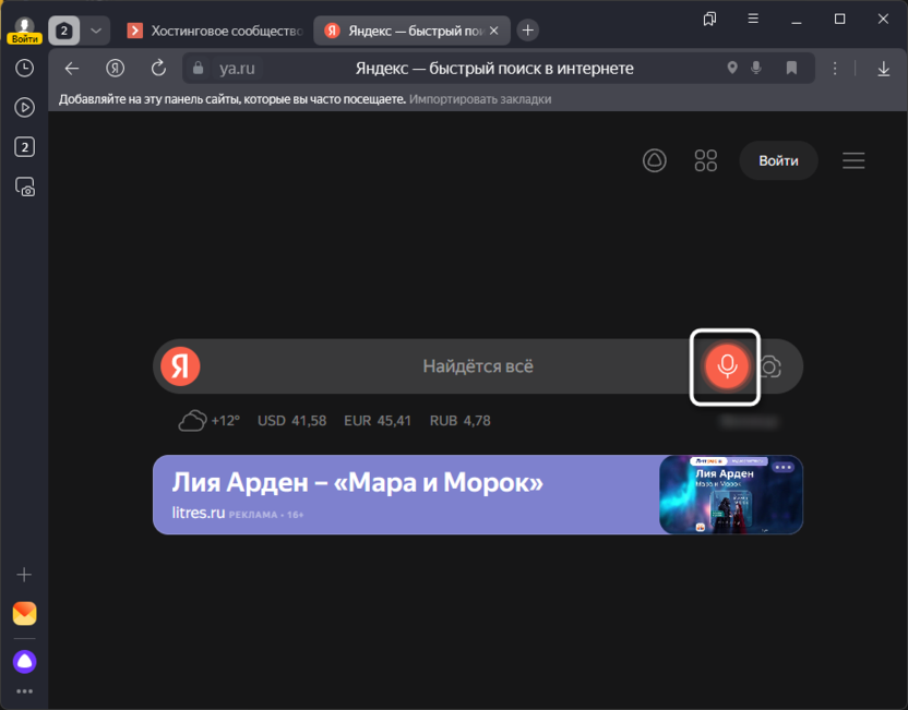 Откройте поисковик и нажмите по кнопке с микрофоном, чтобы активировать голосовой поиск.