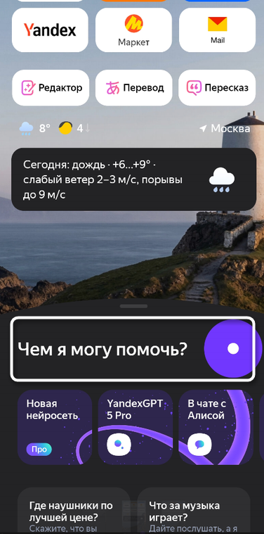 Точно так же Алису можно активировать напрямую, используя для этого кнопку слева на нижней панели.