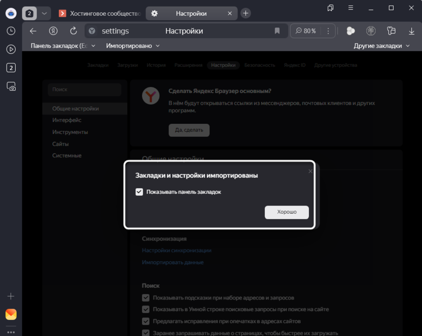 После завершения процесса все закладки из выбранного источника будут добавлены в ваш Яндекс Браузер. Обратите внимание, что импортированные закладки обычно помещаются в отдельную папку с названием источника импорта.