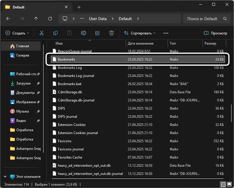 В конечной папке профиля пользователя понадобится выбрать «Bookmarks».