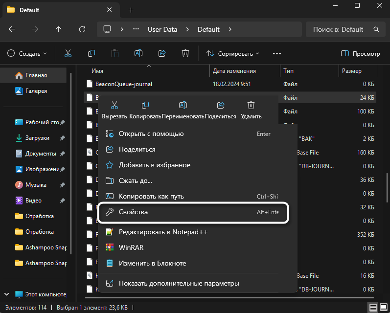 Щелкните правой кнопкой мыши по этому файлу и выберите «Свойства».