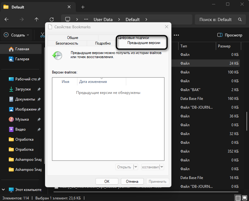 Этот метод является более техническим и подойдет опытным пользователям. Он основан на восстановлении предыдущей версии файла, в котором Яндекс Браузер хранит закладки, с помощью функции «История файлов» в Windows.