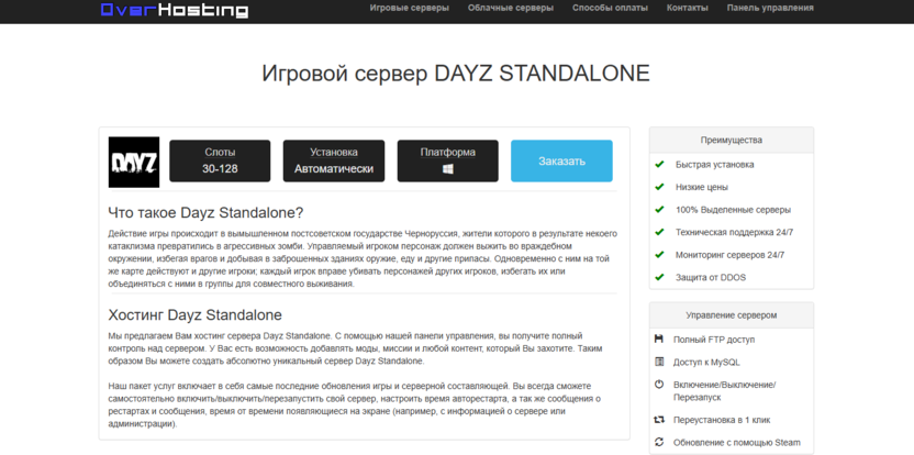 - много готовых серверов для конкретных игр, включая DayZ. Не требуется отдельно разбираться и выбирать по характеристикам;