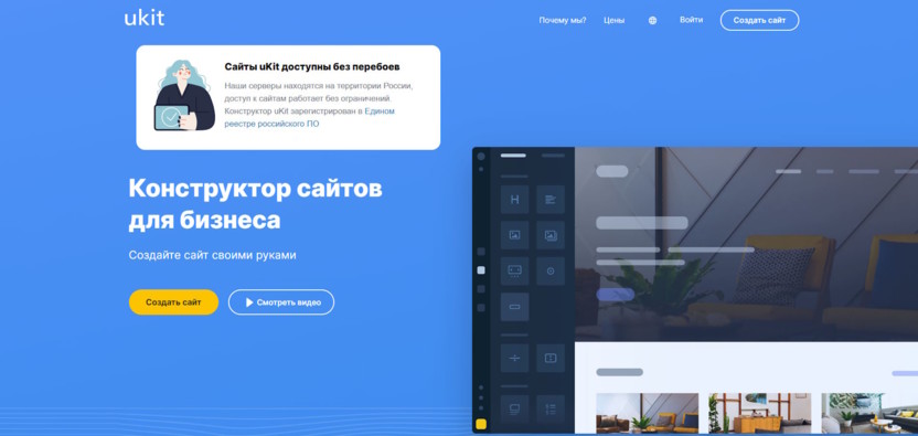 Сервис позволяет создавать небольшие интернет-магазины, блоги, визитки и лендинги без знаний программирования. С помощью готовых шаблонов можно самостоятельно сделать нужный проект с нуля. Для опытных пользователей есть возможность установки собственного кода, что доступно в платных пакетах. На панели управления uKit можно редактировать, публиковать или удалять уже созданные страницы, а также создавать новые из нескольких сотен адаптивных шаблонов. Платформа также предлагает тонкие настройки дизайна, включая анимацию виджетов, выбор цветовых схем и возможность добавления служебных страниц, таких как 404 и политика конфиденциальности.