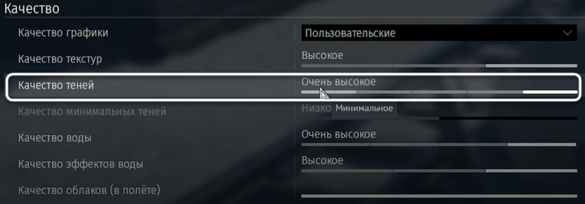 Качество теней. Тени в War Thunder не только создают атмосферу, но и помогают обнаруживать технику противника по силуэтам. Переходы между минимальным, низким и средним качеством практически не влияют на FPS, но высокое качество добавляет дополнительные тени от объектов за счет 2% производительности. Очень высокое качество повышает разрешение теней и добавляет тени от травы и деревьев, что может стоить еще пару процентов FPS. Оптимальный выбор – среднее качество, обеспечивающее хорошую читаемость теней без серьезного влияния на производительность.