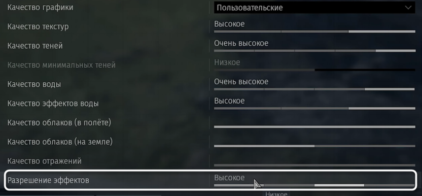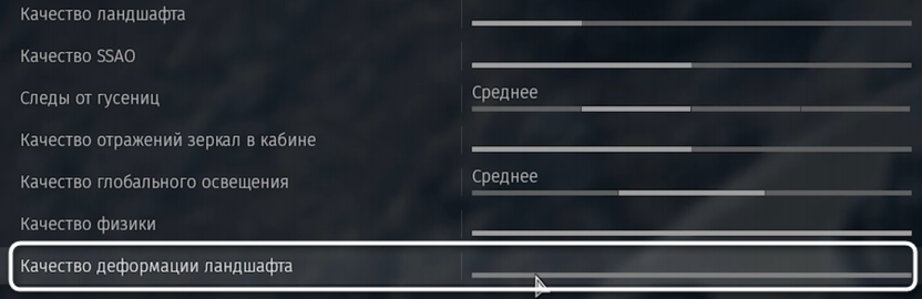 Качество деформации ландшафта. Создает воронки и изменения рельефа при взрывах снарядов и бомб. Преимущественно декоративный параметр, не влияющий на геймплей или производительность. Выбирайте исходя из желания видеть следы интенсивных боев на карте. Для «чистой» картинки без отвлекающих элементов можно отключить, для атмосферности – оставить на среднем уровне.