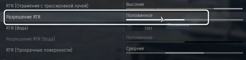 Разрешение RTR. Контролирует разрешение трассированных отражений, влияя на их четкость и детализацию. Параметр отнимает около 7% производительности при повышении разрешения. Учитывая проблемы с качеством самих RTR-отражений, повышение их разрешения кажется нецелесообразным. Если используете трассированные отражения, оставляйте разрешение на минимальном уровне.