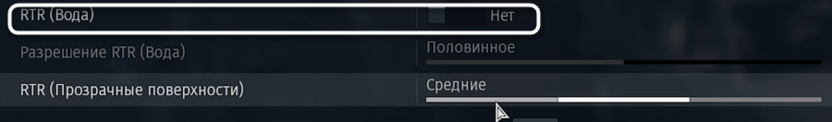 RTR вода. Специальные трассированные отражения для водных поверхностей с собственным ползунком управления. Удивительно, но включение RTR для воды не влияет на производительность, а разрешение отнимает всего 2% FPS. Тем не менее, качество водных отражений с трассировкой спорное – они не всегда выглядят лучше традиционных и не всегда уместны в игровом процессе. Рекомендую отключить для экономии ресурсов.