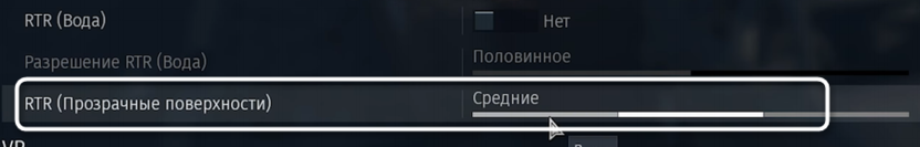 RTR прозрачные поверхности. Трассированные отражения на стеклянных и прозрачных элементах техники, например, кабинах самолетов. Требует наличия определенных типов техники с подходящими материалами для проявления эффекта. Влияние на производительность и визуальное качество в большинстве боевых ситуаций минимально. Для экономии ресурсов и упрощения настроек рекомендую отключить.