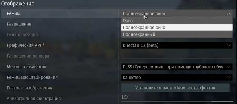 Режим. Для Windows 10 рекомендую использовать полноэкранный режим для максимальной производительности и минимальной задержки. В Windows 11 можно использовать полноэкранное окно благодаря улучшенной оптимизации DWM. При работе с DirectX 11 обязательно активируйте соответствующую галочку для корректной работы графического API. Оконный режим может быть удобен для многозадачности, но снижает производительность.