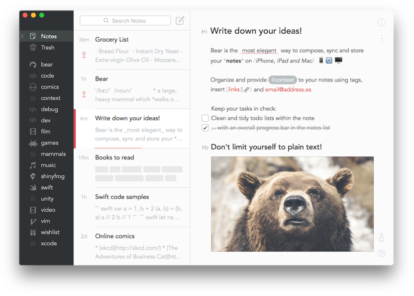 Американское приложение от небольшой итальянской студии Shiny Frog больше напоминает цифровой блокнот писателя, чем традиционный планировщик. Запущенный в 2016 году, Bear быстро завоевал сердца журналистов, блогеров, исследователей и всех, кто работает с большими объемами текстовой информации. Философия приложения строится вокруг идеи, что планирование и создание контента должны быть единым процессом. Вместо жесткого разделения на задачи и заметки, Bear предлагает текучую среду, где идеи плавно превращаются в планы, а планы – в готовые материалы.