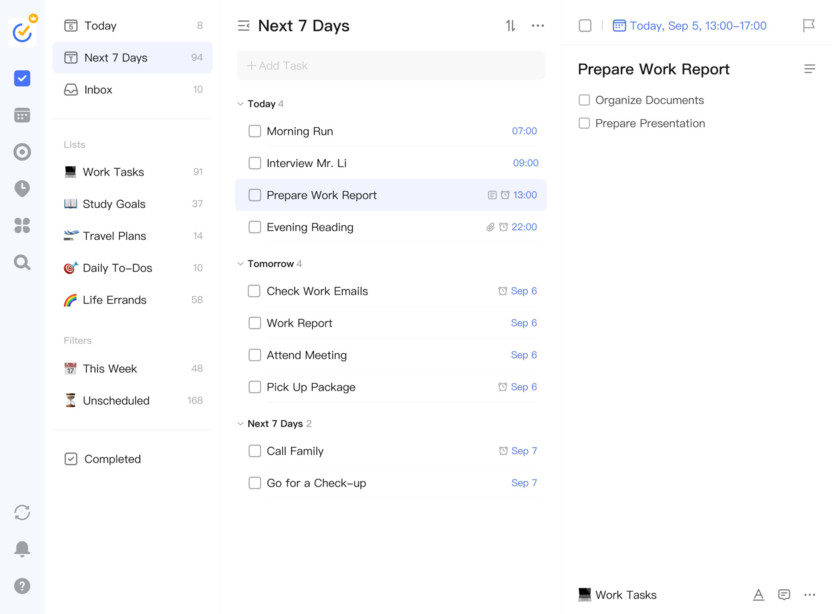 Приложение от китайской компании Appest Inc., основанной в 2013 году, представляет собой уникальный случай на рынке планировщиков – продвинутые функции доступны даже в бесплатной версии. Команда разработчиков сосредоточилась на создании универсального инструмента, который одинаково хорошо подходит как для личного планирования, так и для командной работы. TickTick особенно силен в области тайм-менеджмента – встроенный таймер Pomodoro, трекинг привычек и детальная статистика помогают не только планировать дела, но и анализировать личную эффективность.