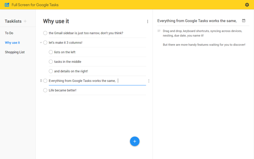 Google Tasks идеален для пользователей, которые живут в экосистеме Google и нуждаются в простом инструменте для личного планирования. Планировщик особенно подходит людям, которые большую часть времени проводят в Gmail и не хотят усложнять свой рабочий процесс дополнительными приложениями.