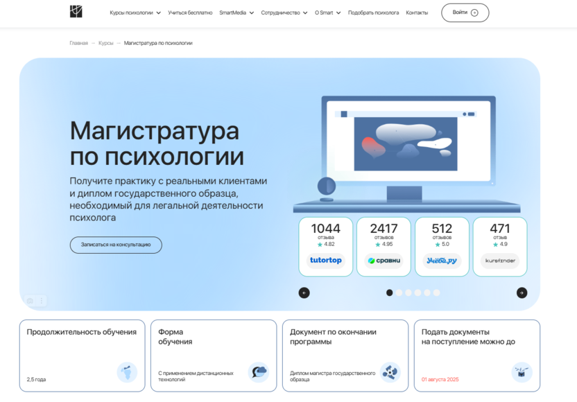 1. Онлайн-институт психологии Smart (онлайн-магистратура по психологии)