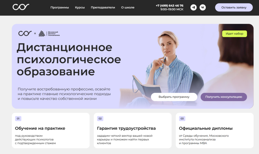 - Психодемия предоставляет поддержку в виде кураторов и создает комфортную учебную среду.