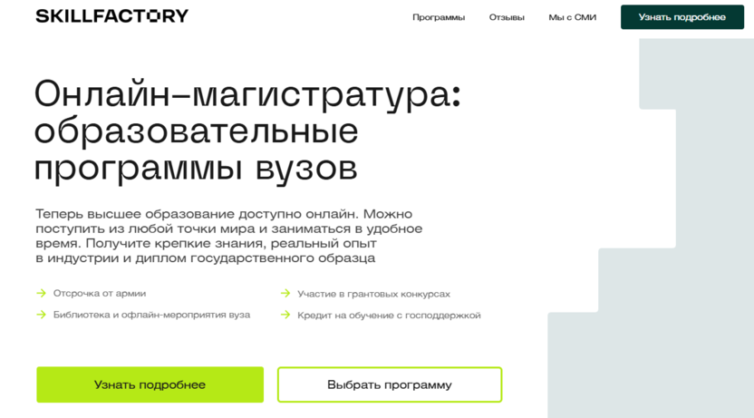 6. Skillfactory (онлайн-магистратура в сфере IT )