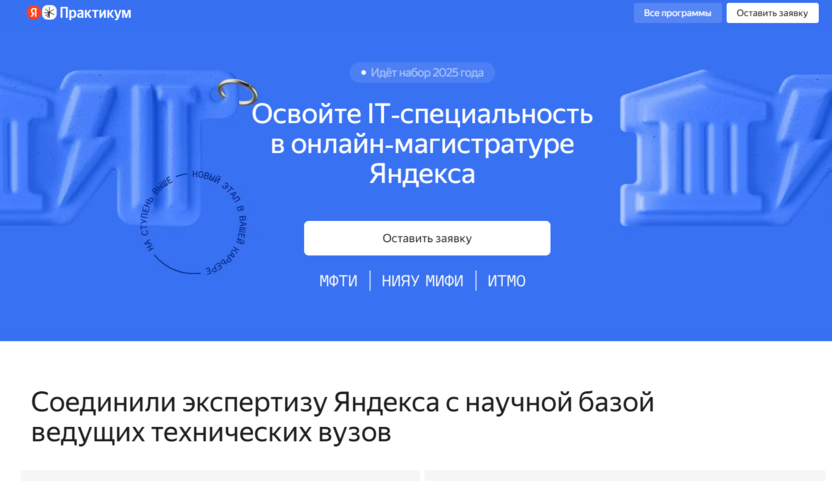 7. Яндекс Практикум (онлайн-магистратура в сфере IT )