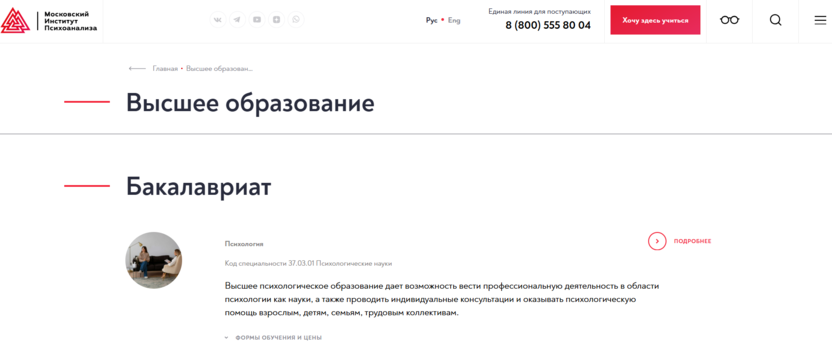 - Активная поддержка студентов на всех этапах от поступления до защиты диплома. - Современная система оценки знаний с доступом к образовательным материалам в любое время.