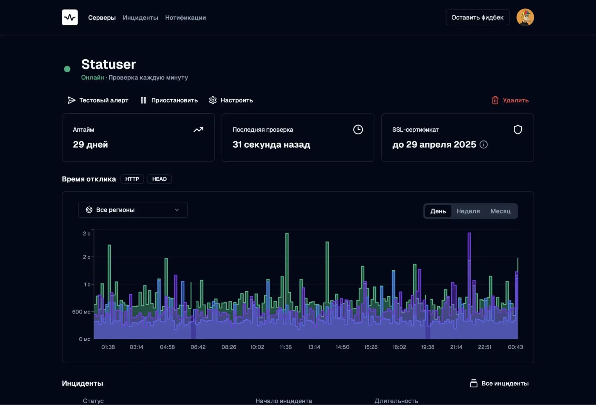 В отличие от множества других сервисов, перегруженных как визуально, так и функционально, Statuser предоставляет только самые необходимые функции для мониторинга серверов:
