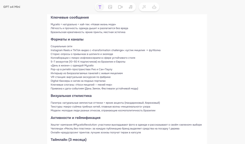 Дальше я протестировал o4-mini на креативных задачах. Попросил разработать концепт рекламной кампании для условного бренда: