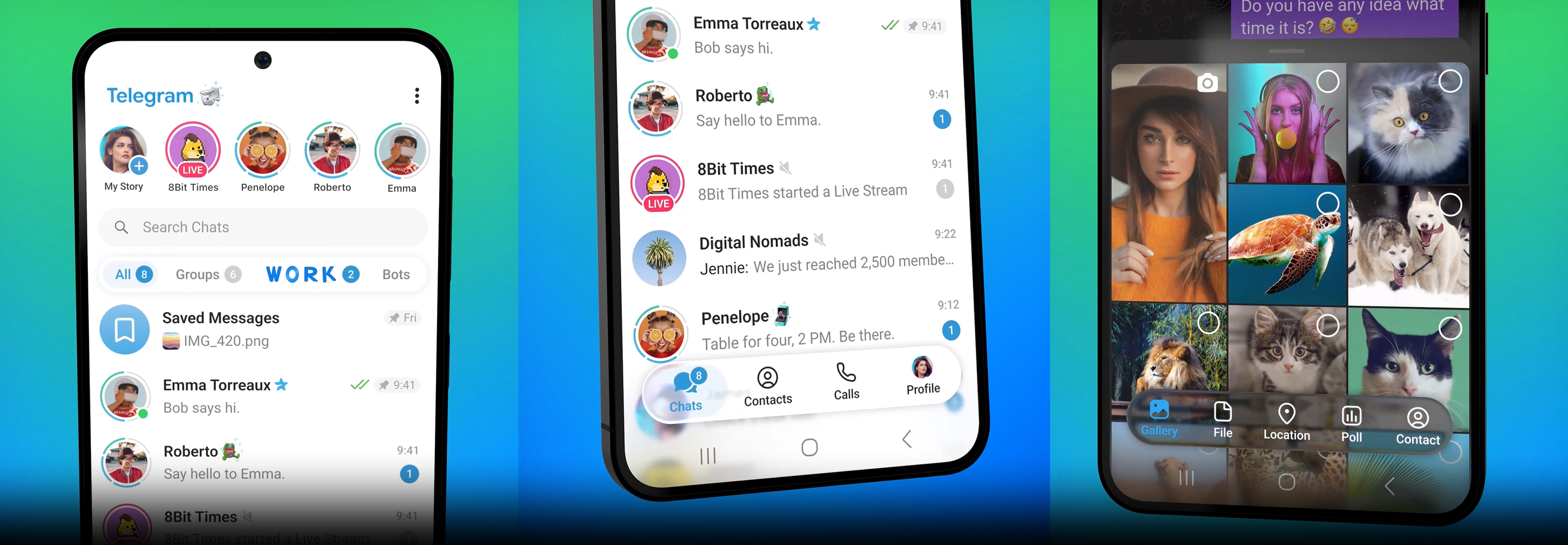 В Telegram на Android полностью поменяли дизайн интерфейса, сделав его таким же, как и на iOS. Теперь в нижней части доступно меню навигации, через которое пользователи одним нажатием смогут переходить к чатам, контактам, настройкам профиля и другим разделам. Также разработчики переработали код, добившись тем самым более плавной работы интерфейса на любых устройствах.