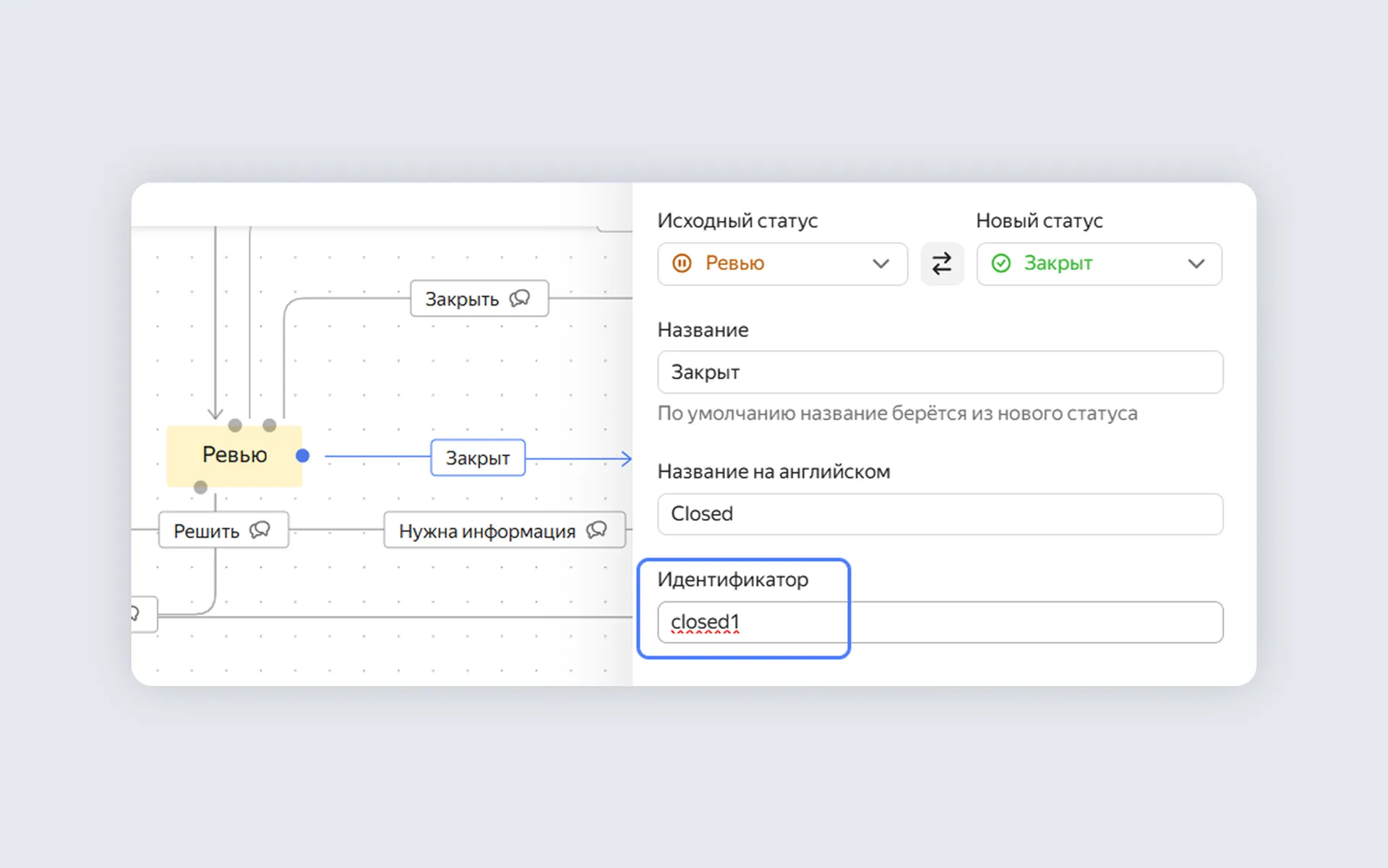 - Добавлена возможность редактирования переходов между статусами при работе. Ранее эти идентификаторы назначались автоматически, а изменить их было нельзя. Теперь же этот параметр можно задавать вручную.