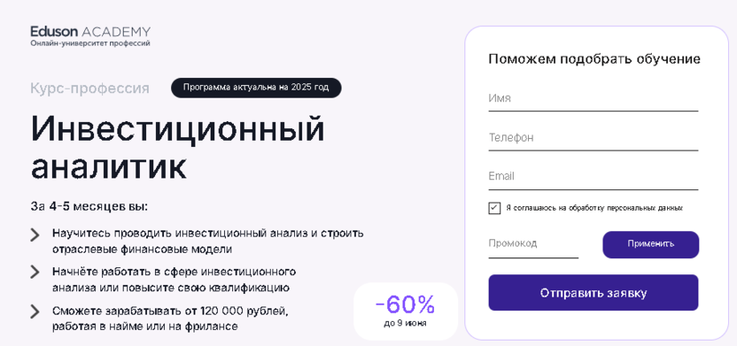1. Инвестиционный аналитик – Академия Eduson