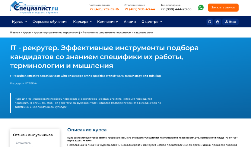 Какова стоимость курсов по IT-рекрутингу?