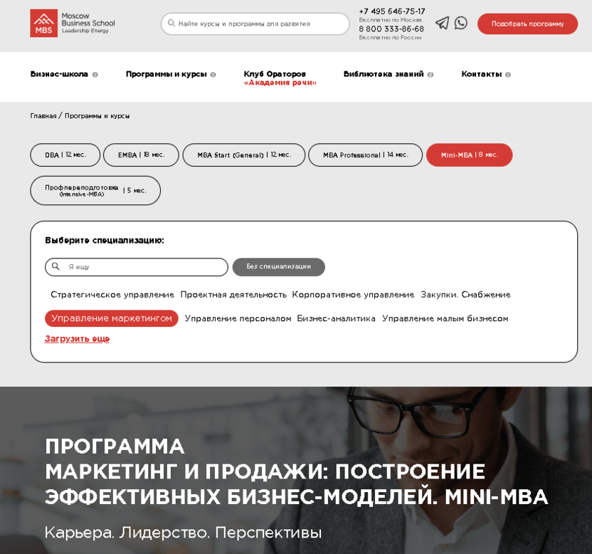 - Маркетинг и продажи: построение эффективных бизнес-моделей, mini MBA – Moscow Business School