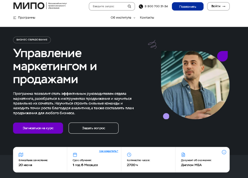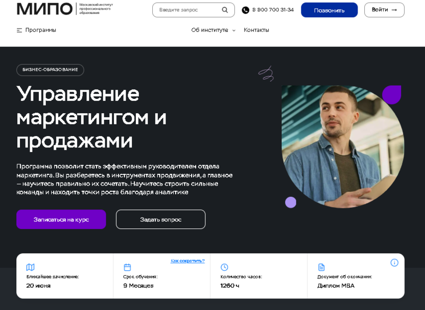- Управление маркетингом и продажами, MBA – МИПО (по промокоду onlinekursy скидка 10%)