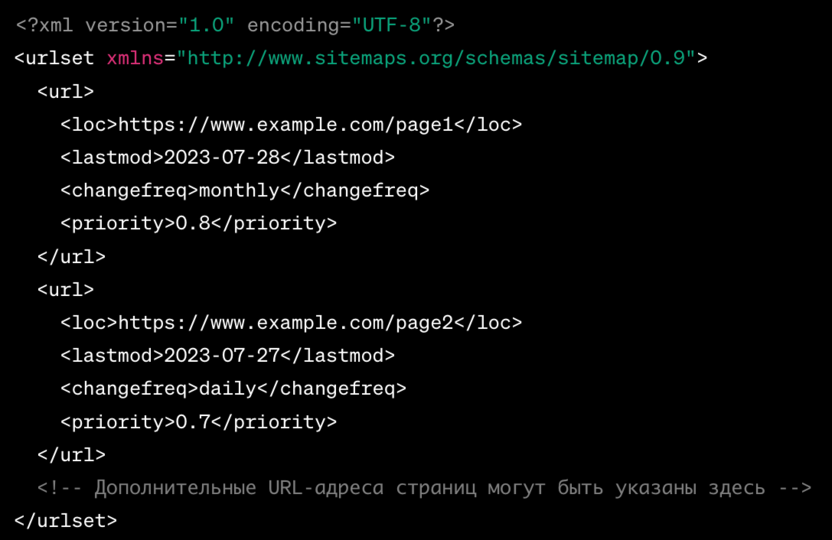 - <lastmod> – обозначает дату, когда на странице были последние обновления.