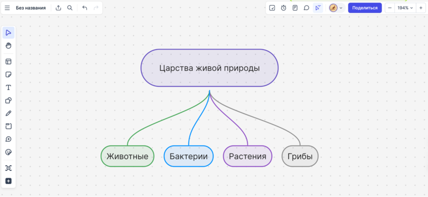 Пример: репетитор по биологии вместе с учеником создают интеллект-карту по теме «Царства живой природы»: группируют растения, животных, грибы и бактерии.