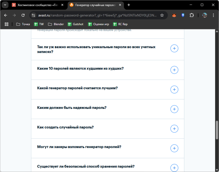 Отличительная особенность сервиса – детальные объяснения принципов работы прямо в интерфейсе. Avast рассказывает, почему человеческие пароли предсказуемы, как работает криптографическая энтропия и почему их подход безопаснее других онлайн-генераторов. Система позволяет настраивать длину пароля от 6 до 50 символов и выбирать типы включаемых символов.